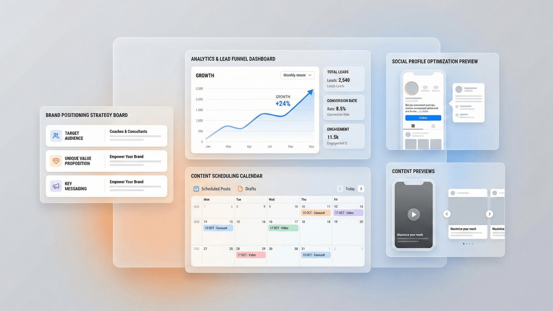 We analyze your niche, offers, and current presence to define a clear authority position that separates you from competitors.